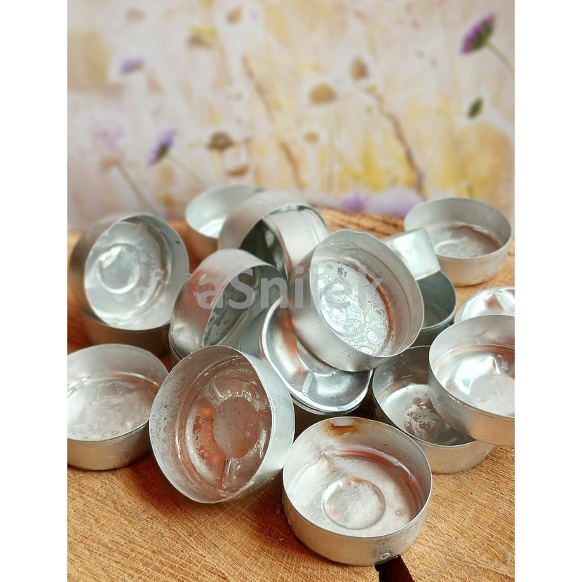 Čajové svíčky vyrábíme ze 100% včelího vosku a po ztuhnutí je vkládáme do vyčištěných kalíšků z vyhořelých svíček. Kalíšky proto můžou mít drobné známky předchozího použití. Mohou být také lehce prohnuté.