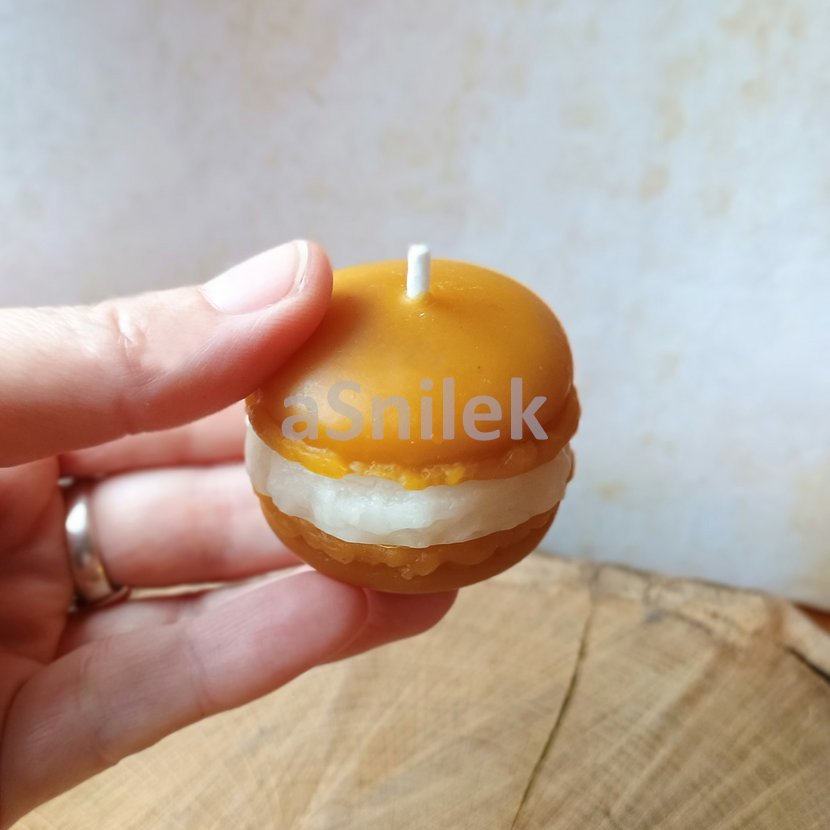 Všem milovníkům makronek udělá zarušeně radost tato svíčka.
